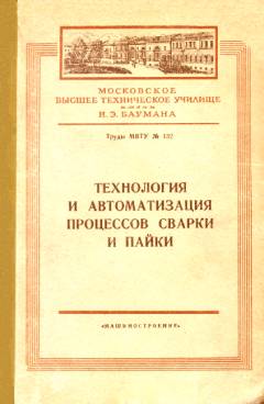 Технология и автоматизация процессов сварки и пайки : сборник трудов кафедр "Сварочное производство" вузов Москвы / ред. Николаев Г. А. ; МВТУ им. Н. Э. Баумана. - М. : Машиностроение, 1969. - 240 с. : ил. - (Труды / МВТУ им. Н. Э. Баумана ; № 132). - Библиогр. в конце статей.