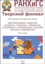 Корпоративная культура: сущность, признаки, управление, специфика в организациях системы высшего образования / О. В. Рудакова, Н. Н. Орлова, В. Г. Аннаев. - Тверь : Триада, 2020. -
