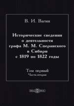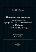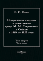 Исторические сведения о деятельности графа М. М. Сперанского в Сибири с 1819 по 1822 годы / В. И. Вагин. - Москва : Директ-Медиа, 2026. -256 с. - ISBN 978-5-4499-5450-3 (т. 1, ч. 2). – ISBN 978-5-4499-5449-7 .