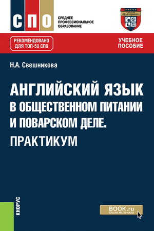 Свешникова, Н. А. Английский язык в общественном питании и поварском деле. Практикум : учебное пособие / Н. А. Свешникова. — Москва : КноРус, 2026. — 294 с. — ISBN 978-5-406-16292-7.