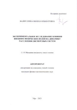 Экспериментальное исследование влияния внешних физических полей на динамику расслоения дисперсных систем : 1. 1. 9-Механика жидкости, газа и плазмы : автореф. дис... кф-мн / Валиуллина В. И. - Уфа, 2025. - 24 с. : ил. - Библиогр.: