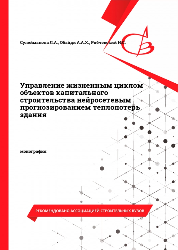 Управление жизненным циклом объектов капитального строительства нейросетевым прогнозированием теплопотерь здания : монография / Сулейманова Л. А., Обайди А. А. Х., Рябчевский И. С. - Белгородский государственный технологический университет им. В. Г. Шухова, ЭБС АСВ, 2024. -ISBN 978-5-361-01405-7 .