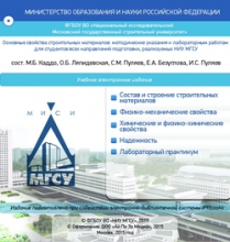 Основные свойства строительных материалов : методические указания к лабораторным работам для студентов всех направлений подготовки, реализуемых ниу мгсу / сост. Каддо М. Б., Ляпидевская О. Б., Пуляев С. М., Безуглова Е. А., Пуляев И. С. - Московский государственный строительный университет, Ай Пи Эр Медиа, ЭБС АСВ, 2015. - ISBN 978-5-7264-1161-3 .
