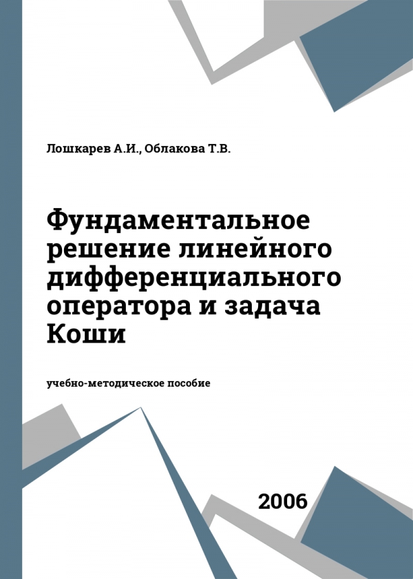 Фундаментальное решение линейного дифференциального оператора и задача Коши : методические указания / Лошкарев А. И., Облакова Т. В. ; ред. Садыхова Г. С. - Московский государственный технический университет имени Н. Э. Баумана, 2006.