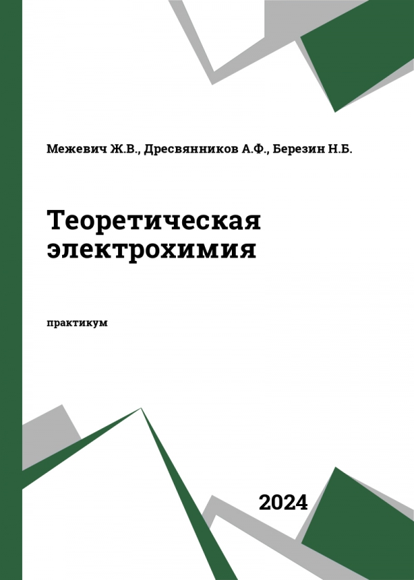 Теоретическая электрохимия : практикум / Межевич Ж. В., Дресвянников А. Ф., Березин Н. Б. - Казанский национальный исследовательский технологический университет, 2024. -ISBN 978-5-7882-3536-3 .