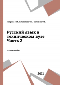Русский язык в техническом вузе. Часть 2 : учебное пособие / Петрова Г. М., Курбатова С. А., Соляник О. Е. - Московский государственный технический университет имени Н. Э. Баумана, 2011.