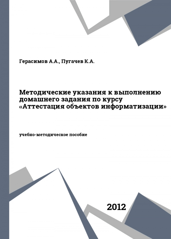 Герасимов, А. А. Методические указания к выполнению домашнего задания по курсу «Аттестация объектов информатизации» : методические указания / А. А. Герасимов, К. А. Пугачев. — Москва : МГТУ им. Н.Э. Баумана, 2012. — 29 с.